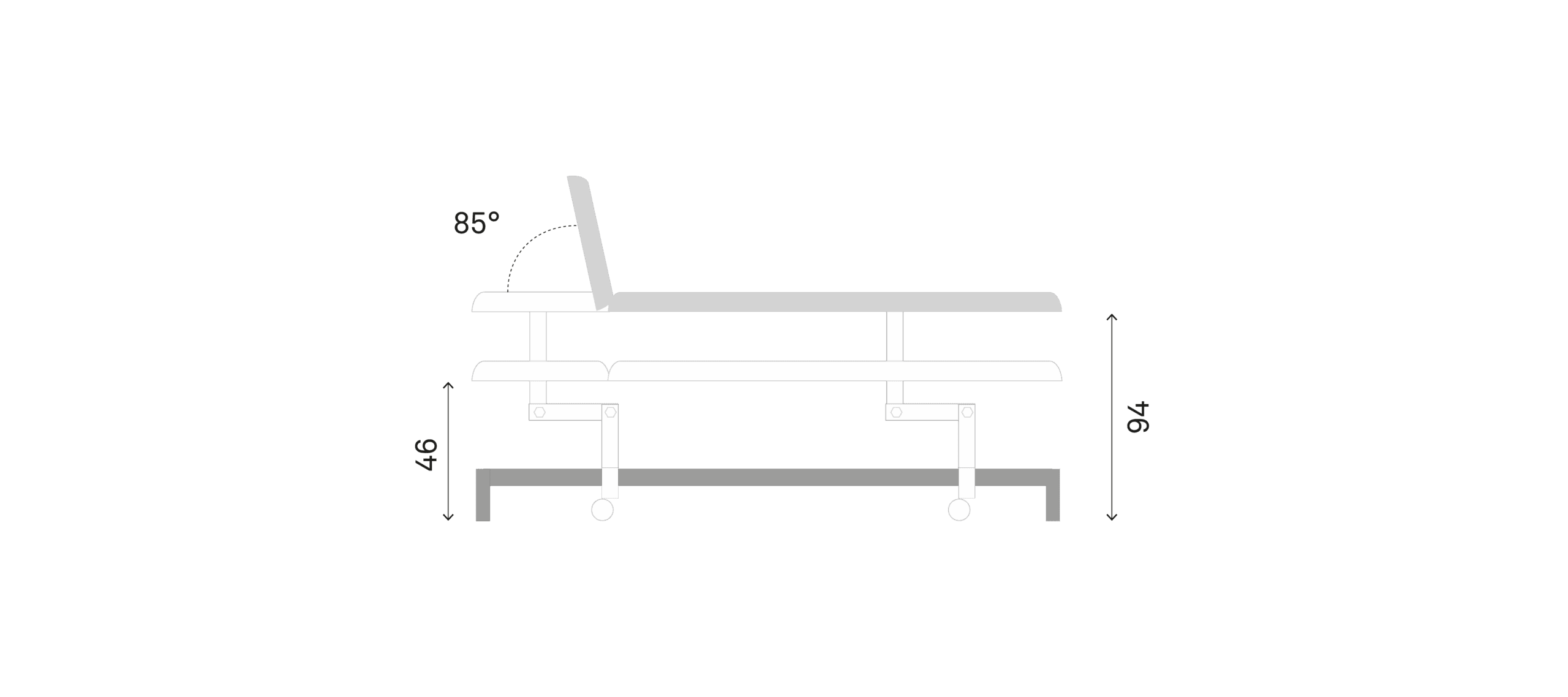 - Respaldo abatible hasta 85º, accionado mediante motor eléctrico