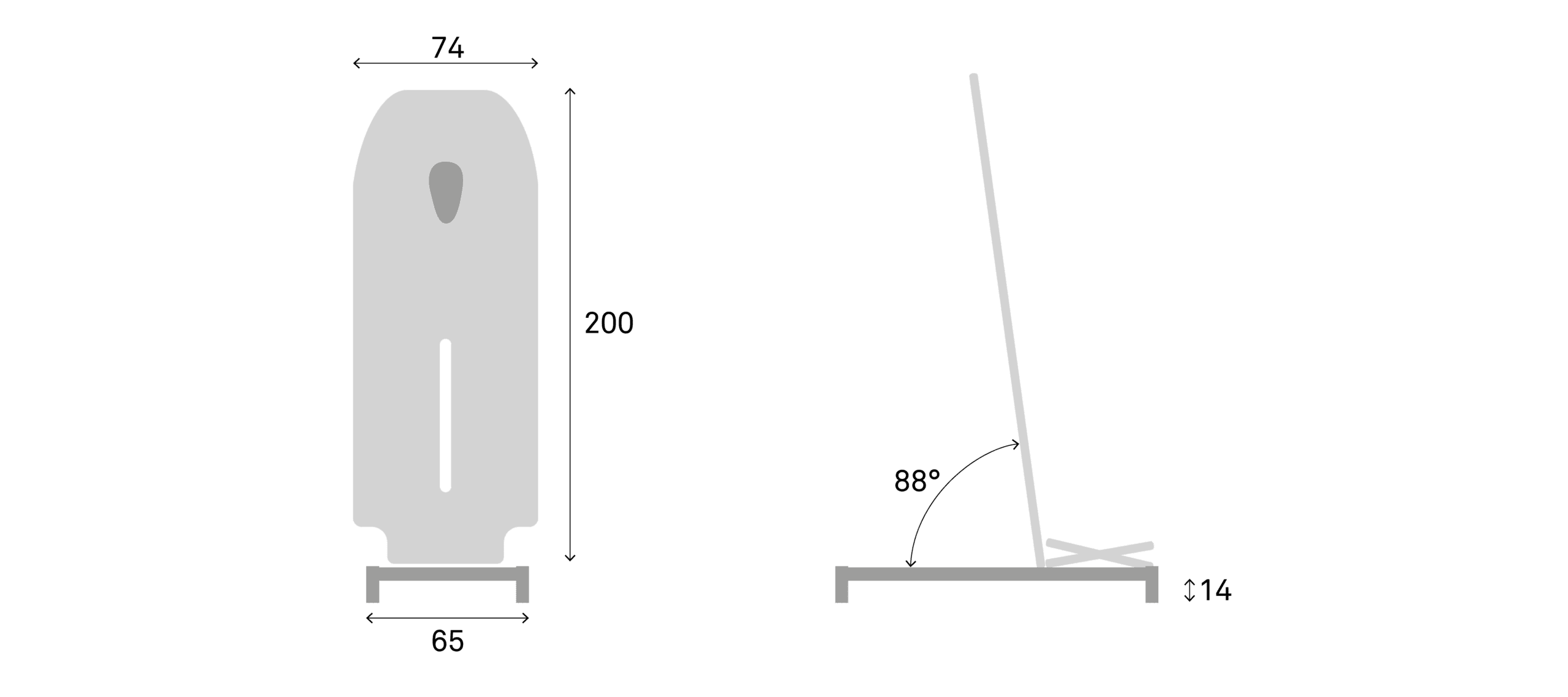 Camilla fija de un cuerpo, con verticalización realizada mediante un motor eléctrico. La altura fija de 49 cm permite trasladar fácilmente al paciente a una silla de ruedas. El diseño del bastidor de soporte permite elevar y trasladar cómodamente al paciente.